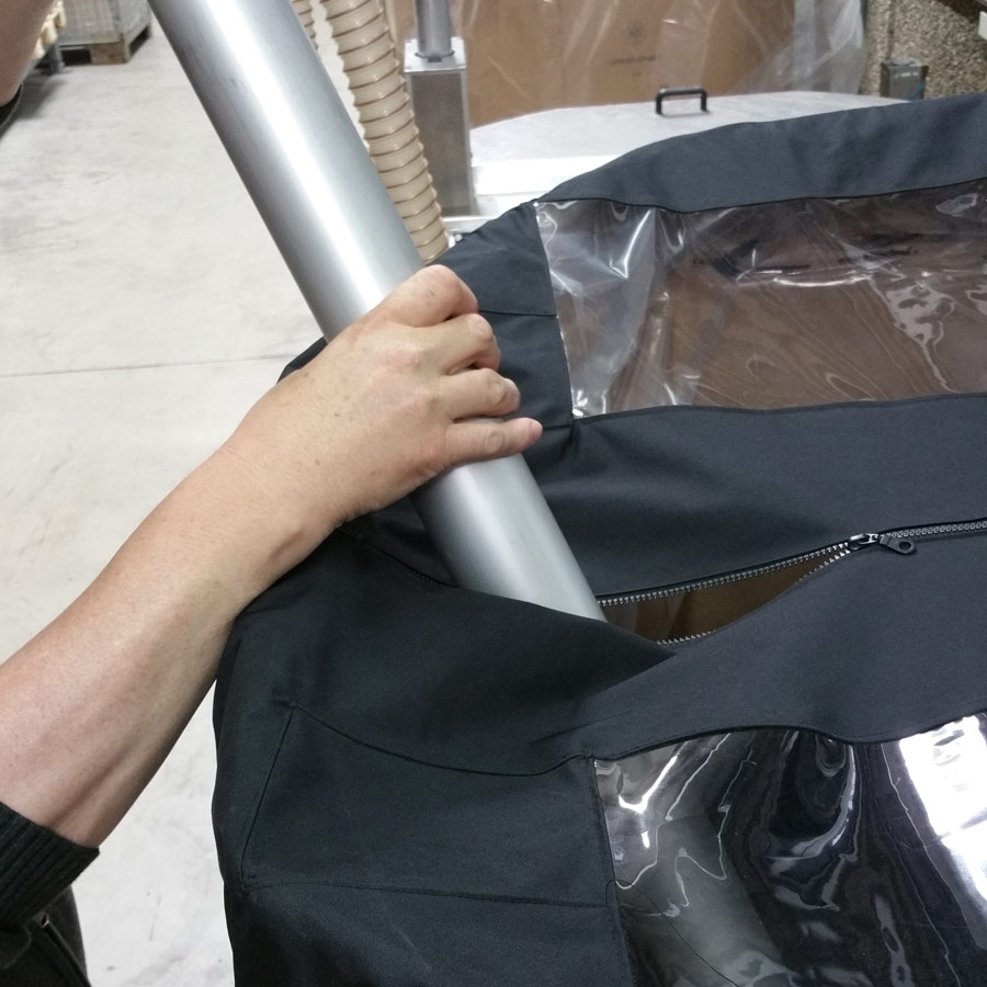 Aby temu zapobiec, opracowaliśmy specjalny system filtrów powietrza dolotowego dla naszych pokryw. Zmywalny lub, w razie potrzeby, wymienialny materiał filtracyjny zapewnia niezawodne filtrowanie napływającego powietrza.